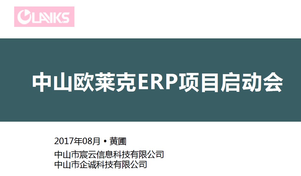 由企诚软件合作伙伴 ‘中山市宸云信息科技有限公司’负责,宸云ERP实施顾问团队牵头实施的欧莱克电器公司ERP软件项目正式启动。