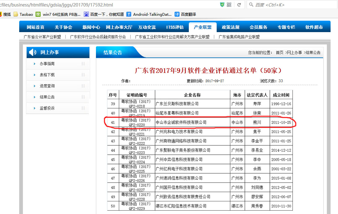 通过结果,已经于2017/09/28日在广东软协官网上面公布。